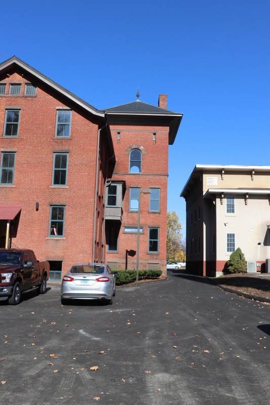 On a beautiful clear day like today, you can see right through the windows on the second and third floors of the tower on the east side of 847 Asylum Avenue.
