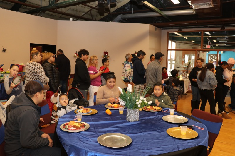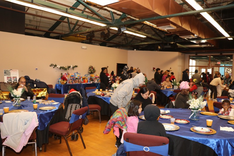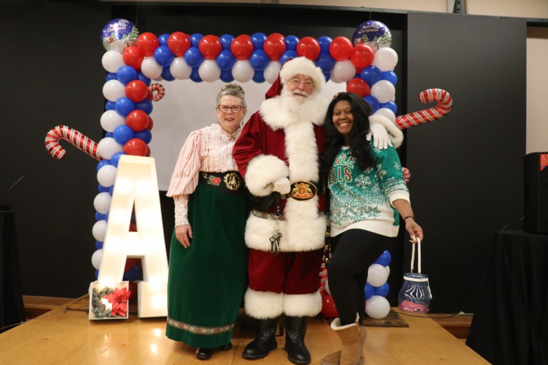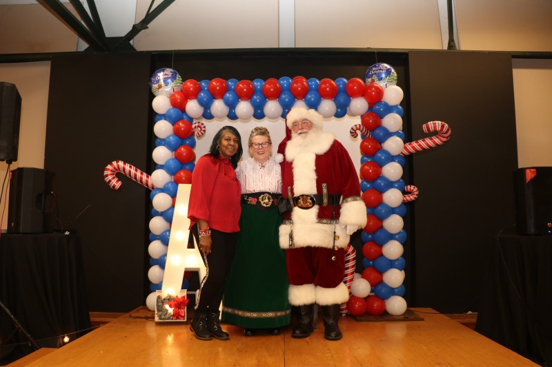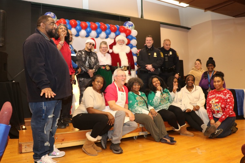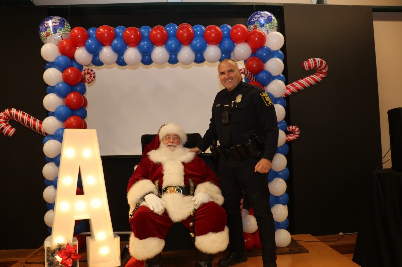 Believe it or not, this is – or was – Caroling in the Park! The Friends of Sigourney Square Park decided this year to move the event indoors and to focus on community and “toys for tots.” The event took place at 224 the EcoSpace, and it was an amazing success. About 200 people attended. Members of the Asylum Hill Neighborhood Association served breakfast to everyone. The Hartford Police Department, including Asylum Hill’s Community Service Office Cesidio “Sid” Palmieri, were on hand to deliver toys to children. And of course Santa was there!