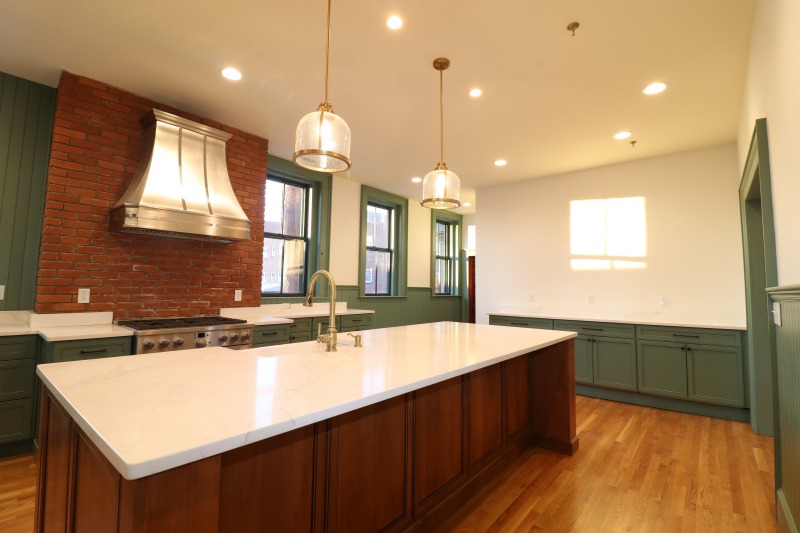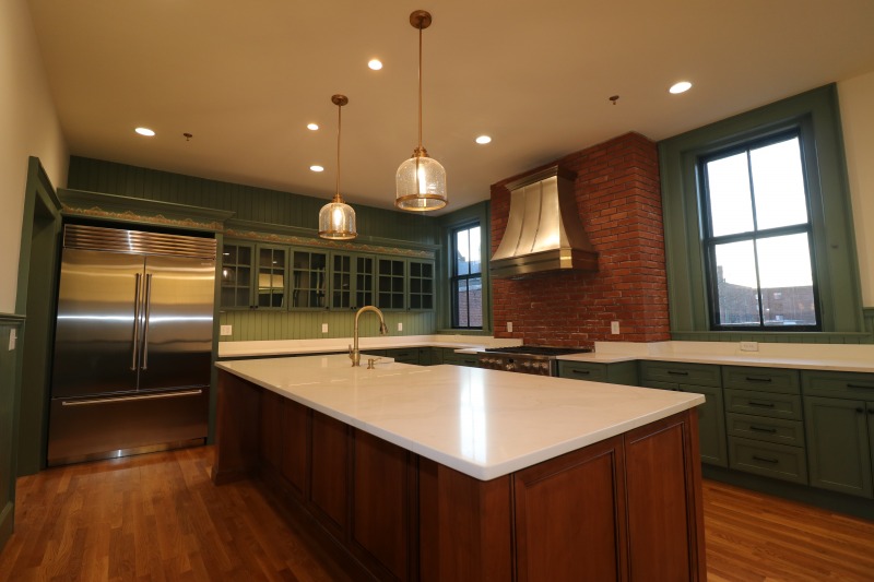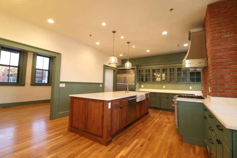 The stove is at the same location as the original kitchen hearth.
