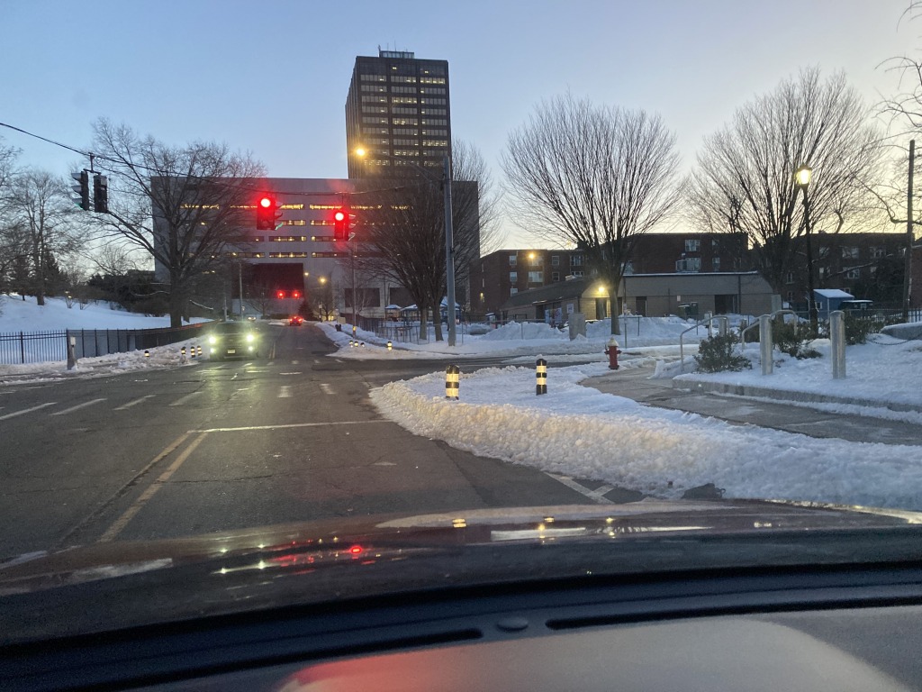 The snow plows went around the posts, substantially reducing the width of the lanes at the intersection.