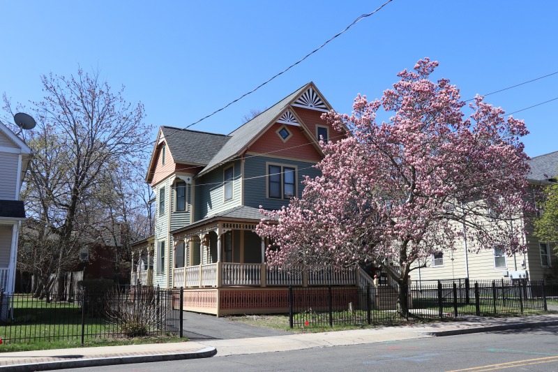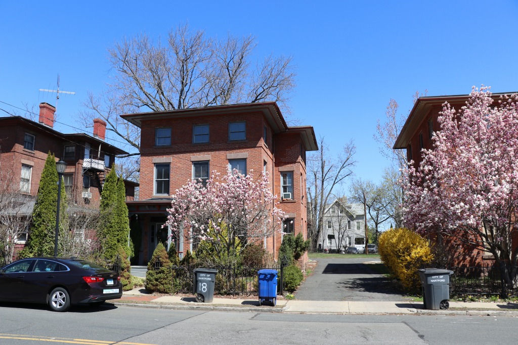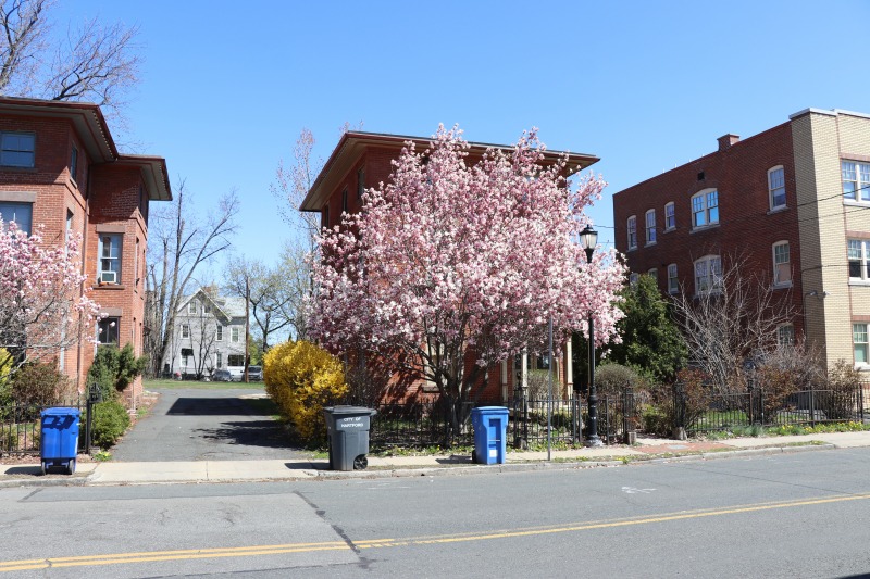 Out looking for better "before and after" shots of 33 Sargeant and 29 Ashley. Came back with some delightful shots of Asylum Hill in bloom. Also, it was trash day.