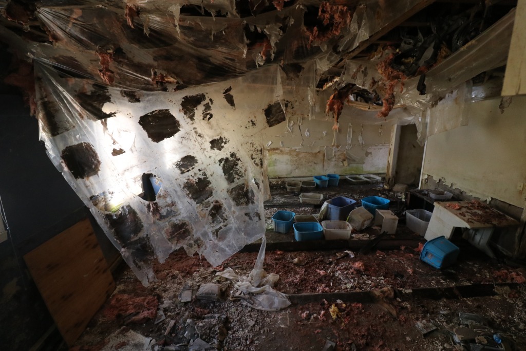 They aren't great photos, admittedly, but I post them because I'm pretty sure this is the last time I ever walk through the addition at 285 Farmington Avenue. Aside from believing, as I truly do, that some things have mutated into new life forms in there, it is becoming increasingly unsafe to walk in there, especially on the second floor. There's also a couple of photos from the second floor in the original section of the house. This isn't nearly as bad, but right now the only access to it is through the addition, so it'll be awhile before I get back up there.