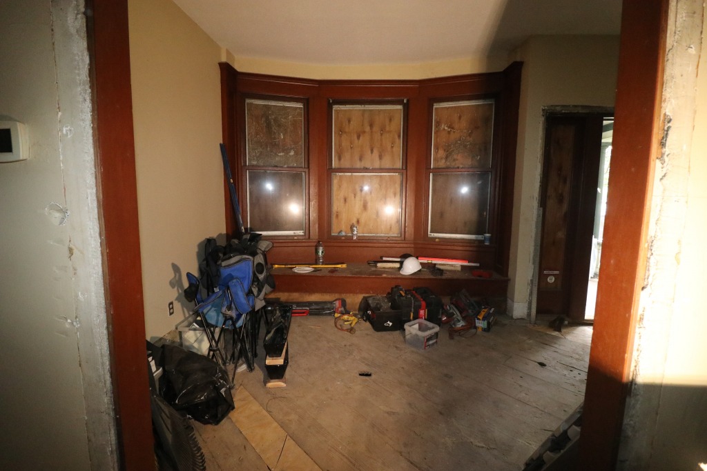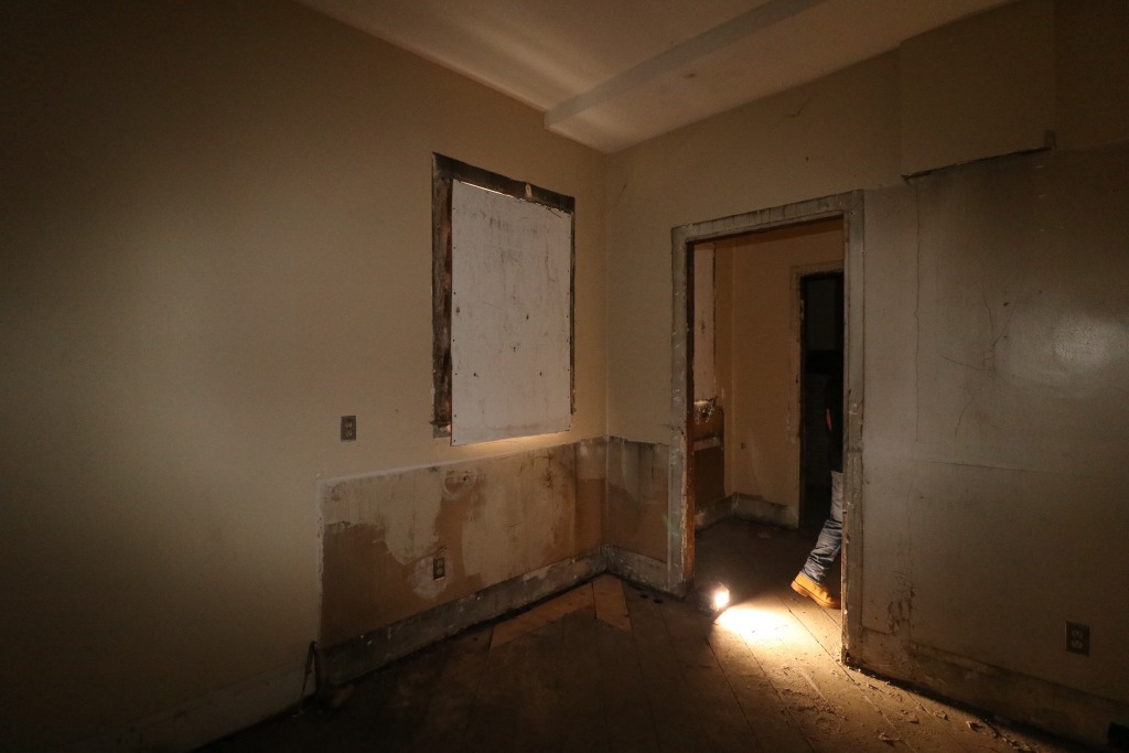 Haven’t started interior demolition yet. No power, so no lights, so this was a bit of practice to get right with my flash. Included one self-portrait, because it looks haunted.