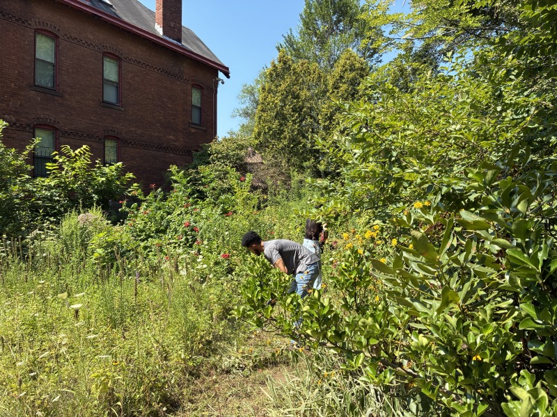 We had two volunteers via The Hartford today, and they put in some work re-creating the pathway around the garden.