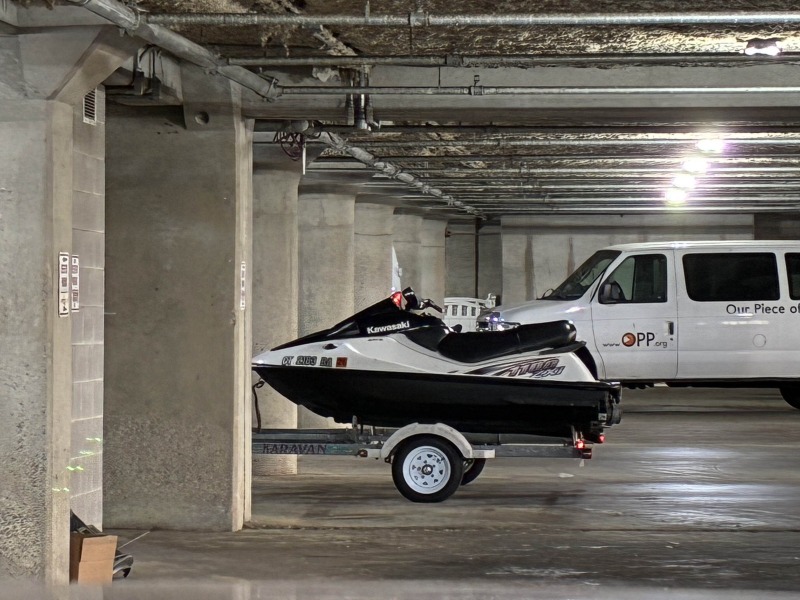 A jet ski in the garage.