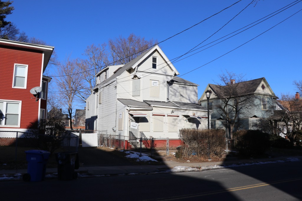 I have found it a real struggle to catch the stained glass at 847 Asylum Avenue in just the perfect afternoon light, in part because I'm not the best photographer in the world and in part because my timing seemed consistently lousy. However, it was recently pointed out to me that the stained glass was added in 1884-1885, when the surrounding landscape was very different. For one thing, that tree that casts a show along the west side of the house would not have been that tall 150 years ago, if it had been there at all. And, more significantly, Trinity Episcopal Church, which is southwest of the Plimpton House, didn't have its tower until 1912 -- and that was probably the last time the light I've been looking for was available.