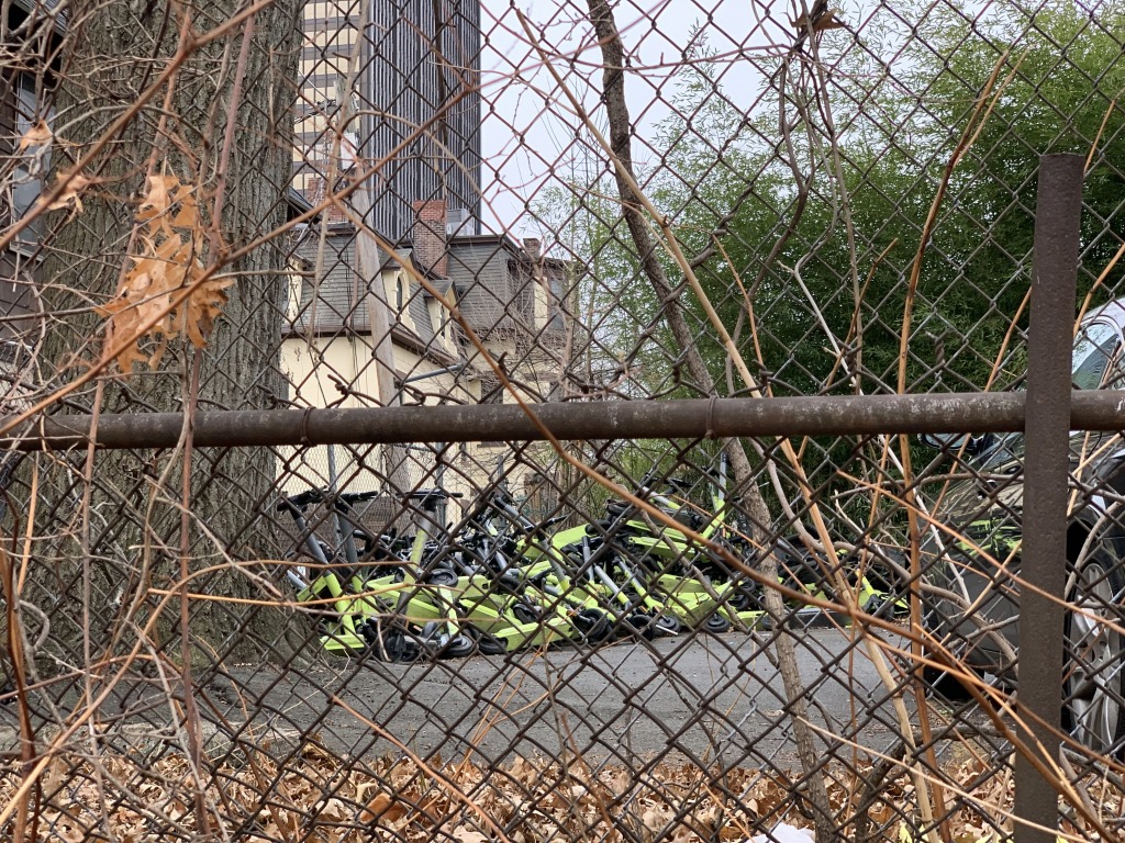 We heard from a neighbor on Ashley Street today about a large pile of scooters piled up in the parking lot of the apartment building that is behind her house, on Collins Street. This isn’t the only pile in the neighborhood: there’s one down at the old Sigourney Market site, and there’s one down at the old Arrow-Hagaman lot. Nice to know that company’s that go out of business can count on someone to pile up all of their old stuff!