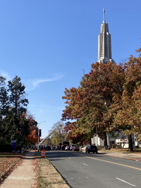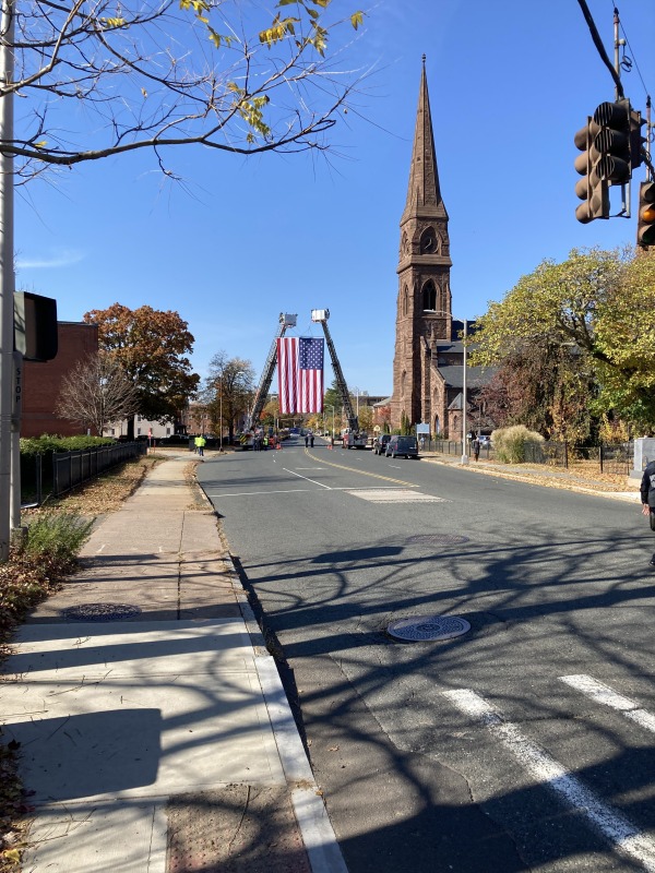 The funeral for Wethersfield firefighter was held today at the Cathedral of Saint Joseph. Both Farmington Avenue and Asylum Avenue were closed for the funeral.