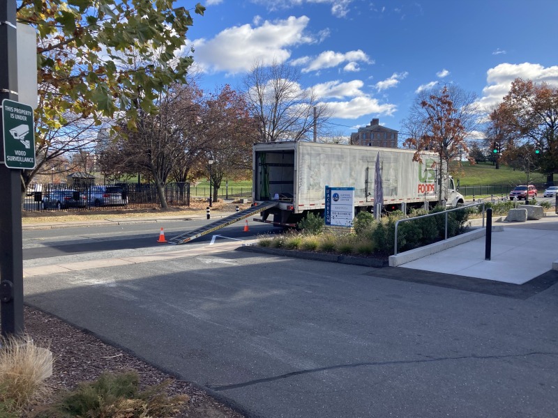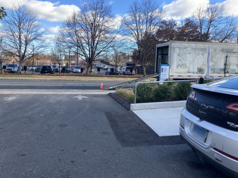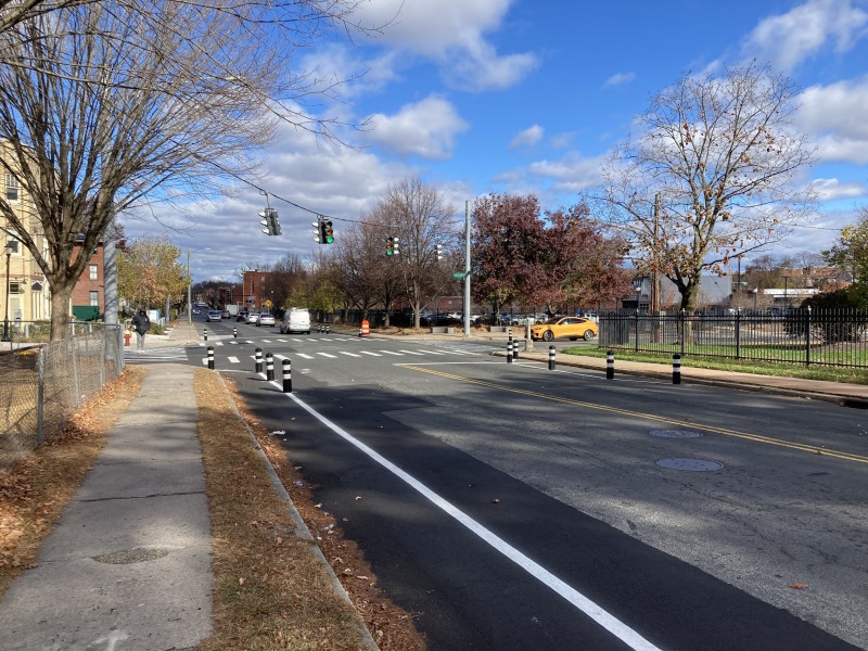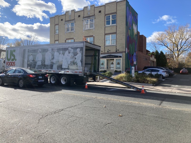 Not to be a downer or anything, but the new traffic pattern eliminated one parking space in front of 207 Garden Street. That matters because those parking spaces also serve as a loading zone for Kent Pizza, and the truck here today had less room for that. A big deal? Not probably, but a different driver could see the new pattern differently than this one did.